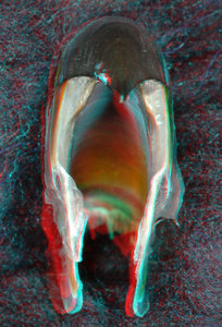 About anaglyph 3D: Photographs here are in 3D, using anaglyph techniques which combines two photographs one in red and the other in cyan (blue + green) color. To get the 3D effect, you must use glasses with red and cyan lenses (filters) over your regular glasses. The form of the beak is far easier to interpret in 3D and we strongly recommend to the viewer that the glasses be obtained (this is especially helpful when viewing enlarged images - i.e. click on the image). These beak photographs were made using Red and Cyan Anachrome Aviator Glasses (see: http://www.anachrome.com/glassbuy.htm or http://www.amazon.com) which cost under $10.00 (USD).