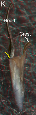 Figure. G - Posterolateral view. H. Posterior view. I - Photomicrograph (2D), anterior beak fragment, posterior view taken perpendicular to cut surface. J - Photomicrograph (2D), posterior beak fragment, anterior view taken perpendicular to cut surface. K - Posterior beak fragment, Posterior view to aid viewer orientation.